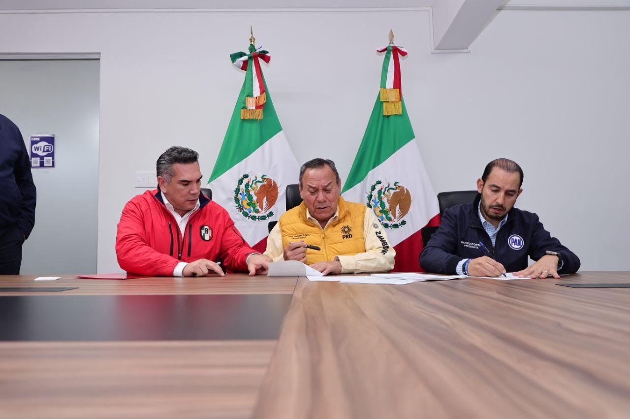 Zacatecas, Zac.- Los partidos Acción Nacional, el Revolucionario Institucional y de la Revolución Democrática registraron ante el Instituto Nacional Electoral la Coalición Fuerza y Corazón por México para la Presidencia de la República y el Congreso Federal, con el objetivo de privilegiar y representar los intereses de las y los mexicanos.