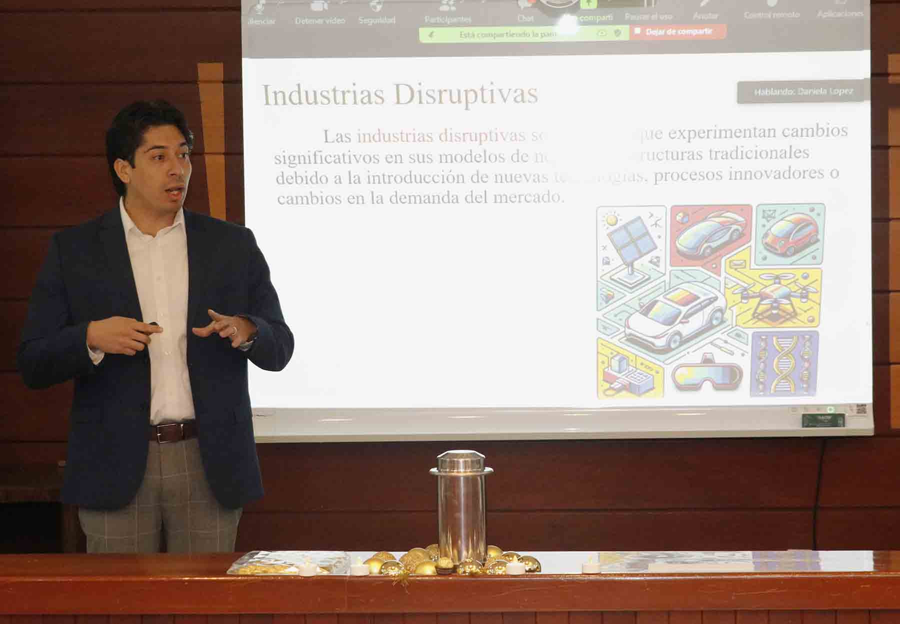 Durante su conferencia “Revolucionando la Industria: Perspectivas sobre Industrias Disruptivas y la Inteligencia Artificial”, el investigador destacó que, en esencia, la IA trata de simular la inteligencia humana en las máquinas, permitiéndoles procesar grandes cantidades de datos, identificar patrones, realizar predicciones y tomar decisiones basadas en información previa o situaciones nuevas.