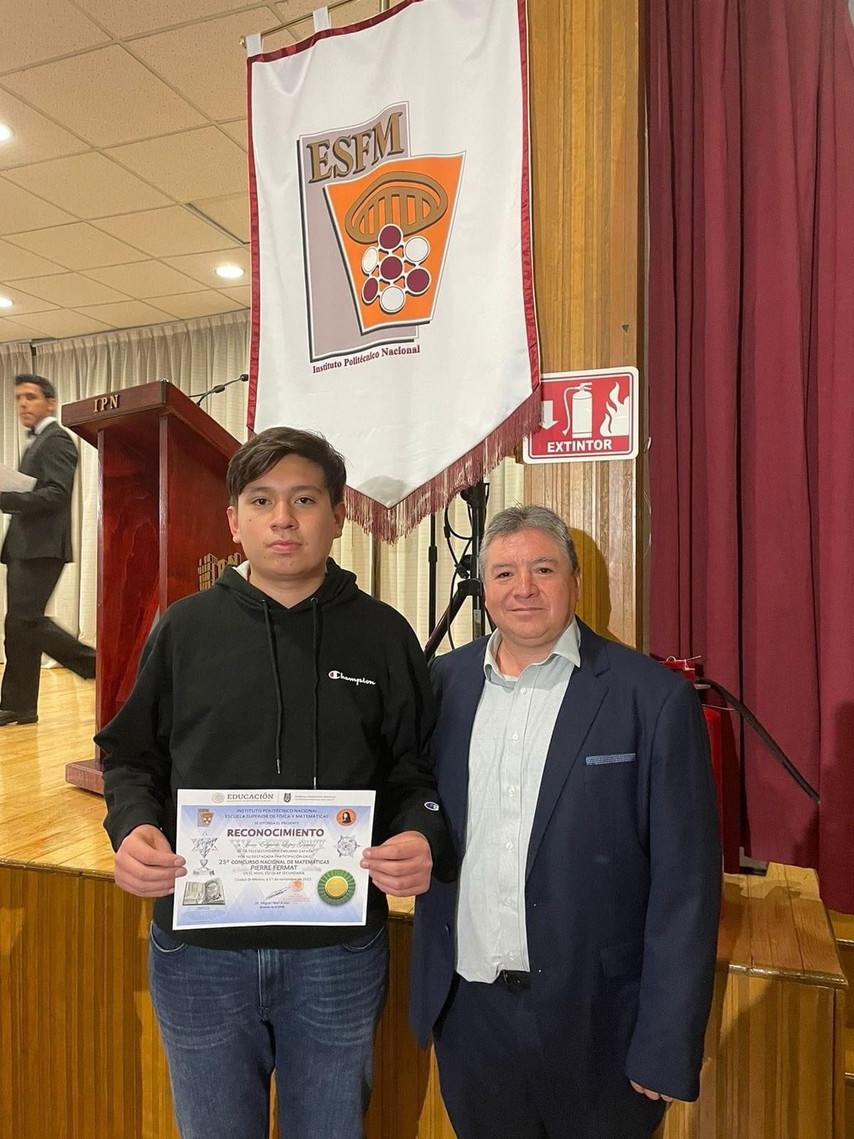 Zacatecas, Zac- Juan Eduardo López García, estudiante del Colegio de Bachilleres del Estado de Zacatecas (Cobaez), plantel Ojocaliente, logró mención honorífica en la ceremonia de premiación Pierre Femat de la XXV Olimpiada de Matemáticas del Instituto Politécnico Nacional de la Escuela Superior de Física y Matemáticas.