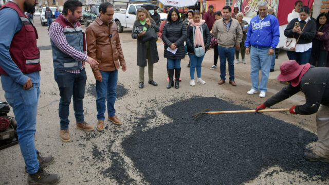 Zacatecas, Zac.-Como parte de las acciones de mejoramiento vial que de manera conjunta llevan a cabo el Gobierno del Estado que preside David Monreal Ávila y el Gobierno de Guadalupe, que encabeza Pepe Saldívar, inició en la Comunidad de Tacoaleche con el Programa Permanente de Bacheo Manual en su tercera etapa. Tras dar el banderazo…