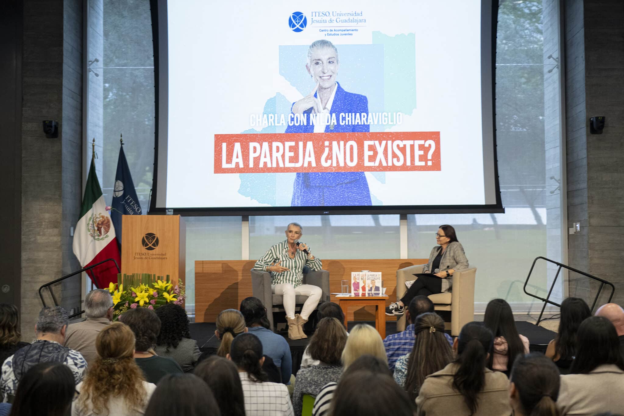 Uno de los sellos del trabajo de Chiaraviglio es el rompimiento de la idea romántica de la pareja para reconstruir el concepto desde el pragmatismo. “El ser humano no es controlable, cuanto más lo castras y limitas, menos tiene para dar”, señaló ante más de 350 personas reunidas en el Auditorio M del campus.