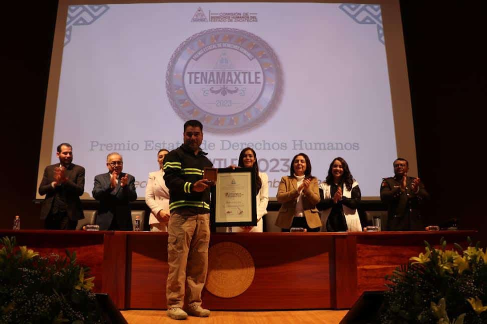 Zacatecas, Zac.- La Comisión de Derechos Humanos del Estado de Zacatecas (CDHEZ), otorgó el Premio Estatal de Derechos Humanos “Tenamaxtle 2023”, al rescatista Moisés Cortés Solís en reconocimiento a su labor altruista, a través de la ayuda humanitaria que otorga a las personas que se encuentran en situación de riesgo y vulnerabilidad, ante algún desastre natural.