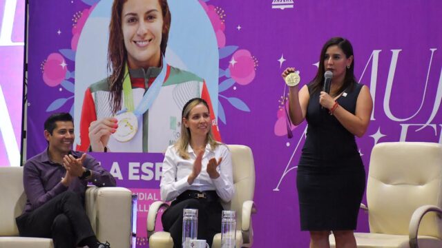 Zacatecas, Zac.- En el marco de las actividades correspondientes a la conmemoración del Día Internacional de la Mujer organizadas en la Ciudad de Guadalupe, esta mañana el alcalde, Julio César Chávez Padilla, recibió en el Auditorio de la Presidencia Municipal a la campeona mundial de clavados y medallista olímpica Paola Espinosa, quien a través de…