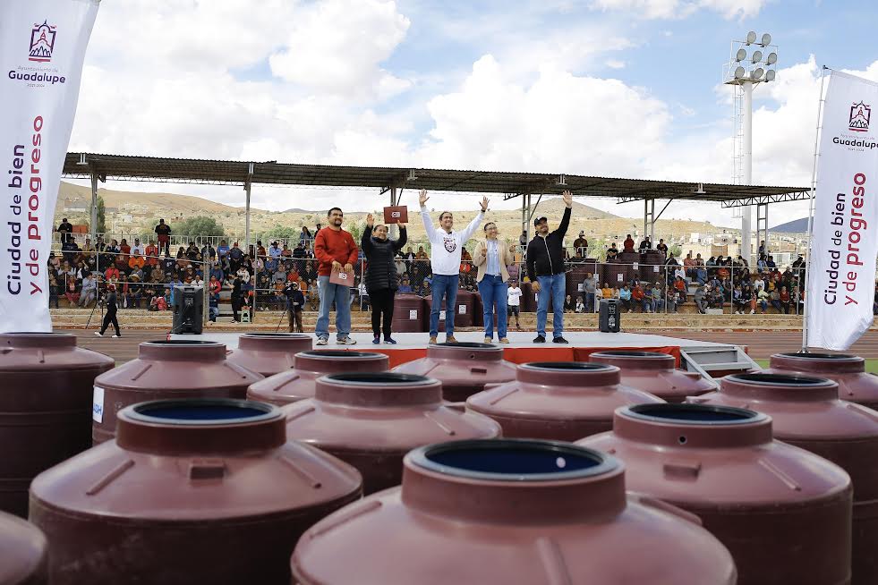 En atención a las políticas públicas del Gobierno Municipal que preside Pepe Saldívar, para mejorar la calidad de vida de las familias, esta tarde, en la Unidad Deportiva de la Ciudad de Guadalupe, el alcalde entregó un total de 650 depósitos de agua a igual número de familias, beneficiando con ello a más de 2 mil 200 guadalupenses.
