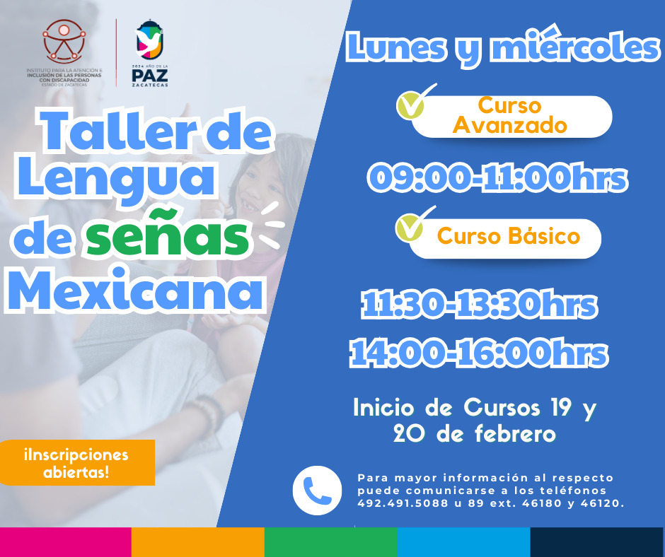 Zacatecas, Zac.- Con el objetivo primordial de fomentar la participación y el aprendizaje de la ciudadanía en áreas fundamentales, y como parte de la Agenda por la Paz 2024, el Gobierno de Zacatecas, a través del Instituto para la Atención e Inclusión de Personas con Discapacidad, llevará a cabo el Curso de Lengua de Señas Mexicana y el Taller de Sistema Braille.