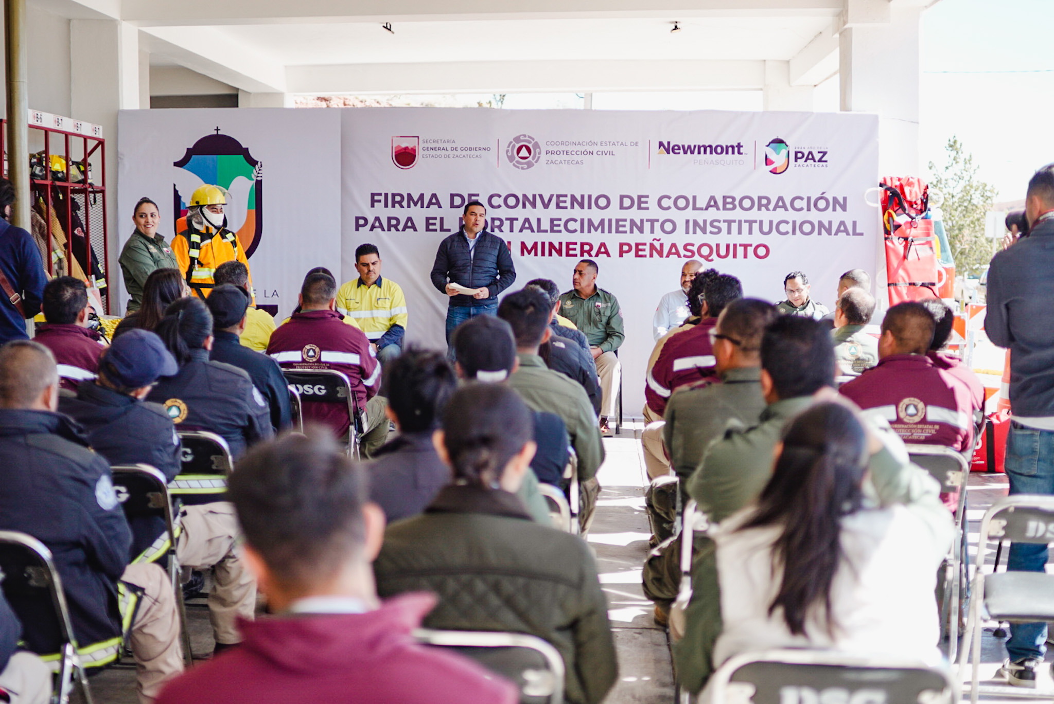 Zacatecas, Zac.-Al cierre del 2023 la minera Newmont Peñasquito suscribió un con la Coordinación Estatal de Protección Civil del estado que buscafortalecer la y arpc.
