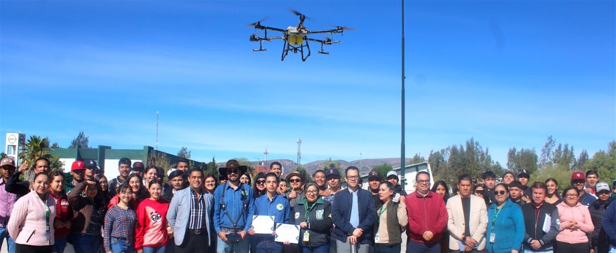 Durante dicha exhibición, se voló un dron DJI Agras T30 en la explanada de la Universidad, ante alumnas y alumnos de la carrera de Agricultura Sustentable y Protegida, así como estudiantes de Mecatrónica.