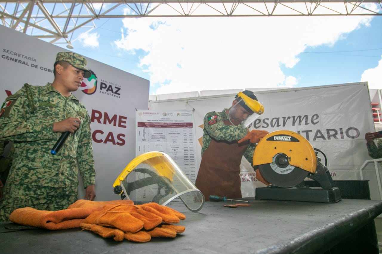 Zacatecas, Zac.- Los gobiernos del estado y de México, a través de la Feria de la paz y desarme voluntario Zacatecas 2024, pusieron a disposición de la ciudadanía los servicios de las instituciones y la posibilidad de canjear un arma de cualquier tipo por hasta casi 25 mil pesos, con el objeto de sacar de circulación los artefactos que atentan contra la integridad y seguridad de las personas.