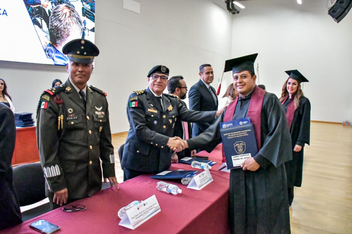 El Secretario de Seguridad Pública felicitó a los graduados y reconoció su esfuerzo, exhortándolos a continuar con la misma pasión y dedicación en su desarrollo profesional.