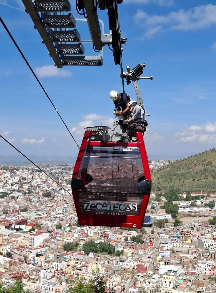 Zacatecas, Zac.- A fin de estar preparados para recibir al turismo en temporada vacacional de verano, así como a las familias de la entidad, técnicos especializados brindan servicio de mantenimiento al sistema eléctrico y de cableado del Teleférico de Zacatecas.