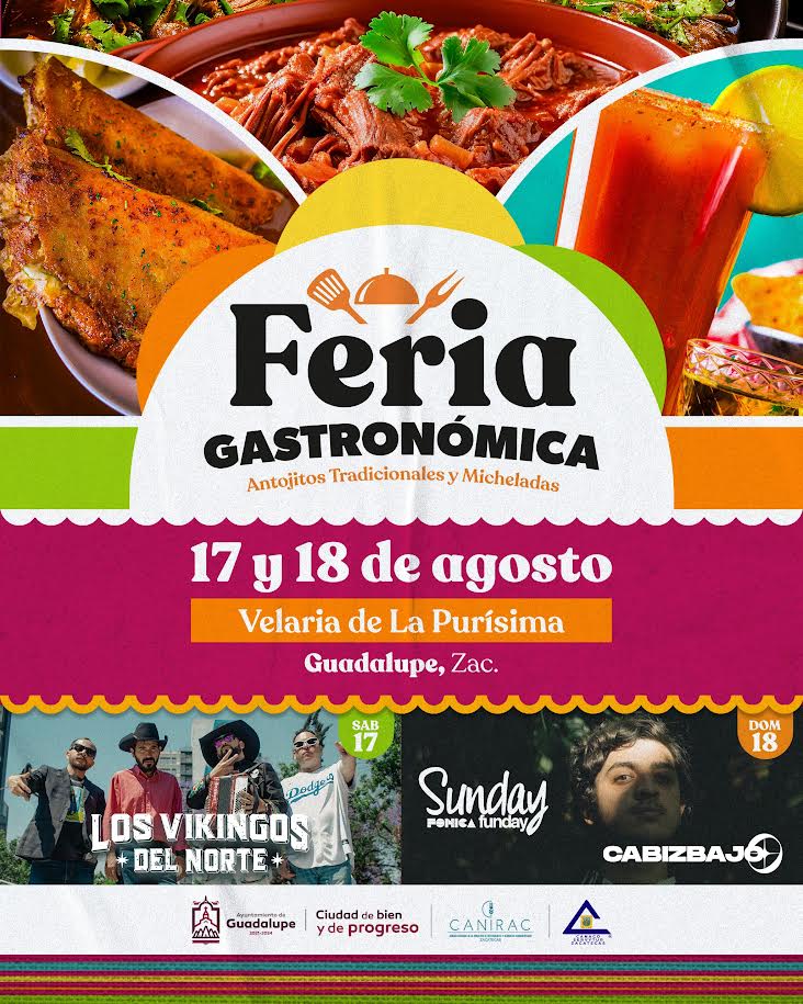 Zacatecas, Zac.- En el Gobierno de Guadalupe, que encabeza Pepe Saldívar, ya tienen todo listo para la realización de la primera edición de la ‘Feria Gastronómica, antojitos tradicionales y micheladas’, que se llevará a cabo este sábado 17 y domingo 18 de agosto en la velaria del Parque La Purísima.