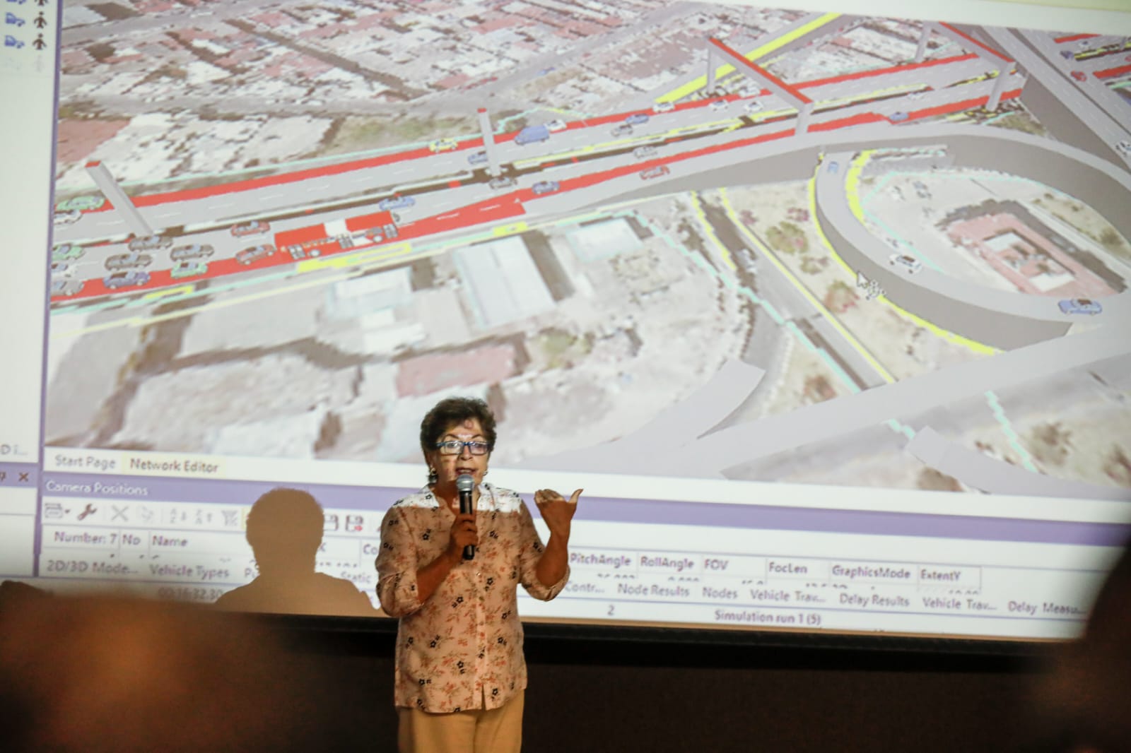 Durante su exposición, presentó una proyección, basada en un software alemán, sobre el flujo de movilidad vehicular de los próximos años, y sostuvo que la obra garantizará la misma hasta el 2053.