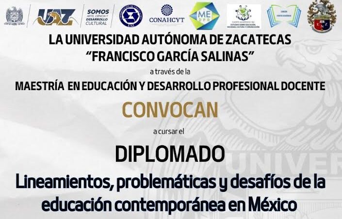 Zacatecas, Zac.- La Universidad Autónoma de Zacatecas (UAZ) a través de la Maestría en Educación y Desarrollo Profesional Docente (MEDPD) convoca a participar en el diplomado “Lineamiento, problemáticas y desafíos de la educación contemporánea en México”, el cual se llevará a cabo del 7 de octubre de 2024 al 7 de abril de 2025. Las sesiones se realizarán cada lunes en el Aula de usos múltiples de la Benemérita Escuela Normal “Manuel Ávila Camacho”.