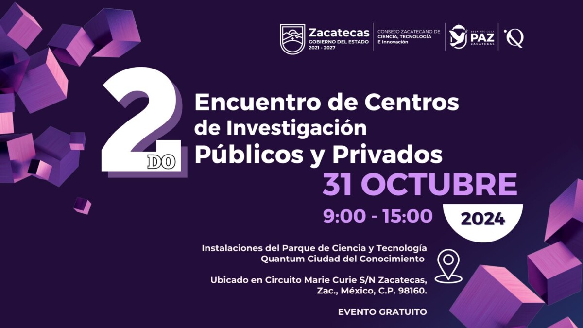 Zacatecas, Zac.- El Gobierno del Estado, a través del Consejo Zacatecano de Ciencia, Tecnología e Innovación (Cozcyt), convoca a participar en el 2º Encuentro de Centros de Investigación Públicos y Privados Quantum (ECIQ), que se llevará a cabo el próximo 31 de octubre de 2024, de 9:00 a 15:00 horas, en Quantum Ciudad del Conocimiento.