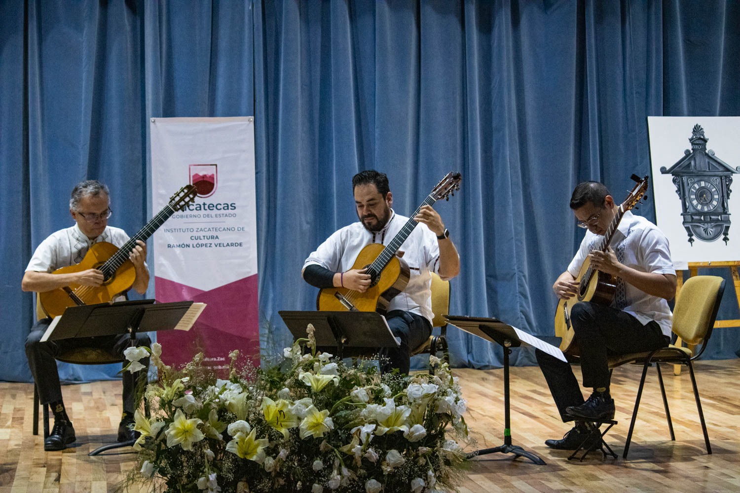 Zacatecas, Zac.-El Museo Manuel Felguérez se llenó de música con la presentación del cuarteto de guitarras “Kanari”, conformado por talentosos músicos de la Universidad Autónoma de Zacatecas (UAZ). El ensamble ofreció al público el programa titulado «Viva México», que incluyó música de origen nacional.