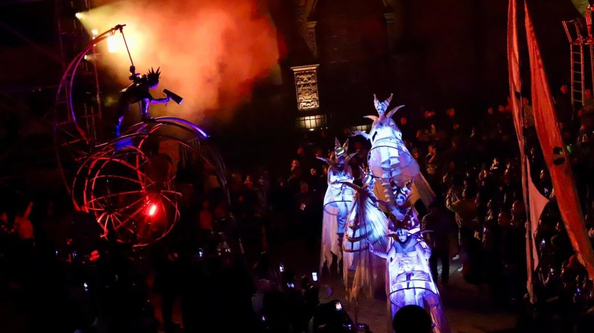 Las actividades del día comenzaron a las 6 de la tarde, con el espectáculo itinerante ¡Encantados! de la agrupación Cornisa 20, proveniente de San Miguel de Allende, Guanajuato. Este recorrido por las calles del centro histórico de Zacatecas dio inicio a una jornada llena de creatividad y magia escénica.