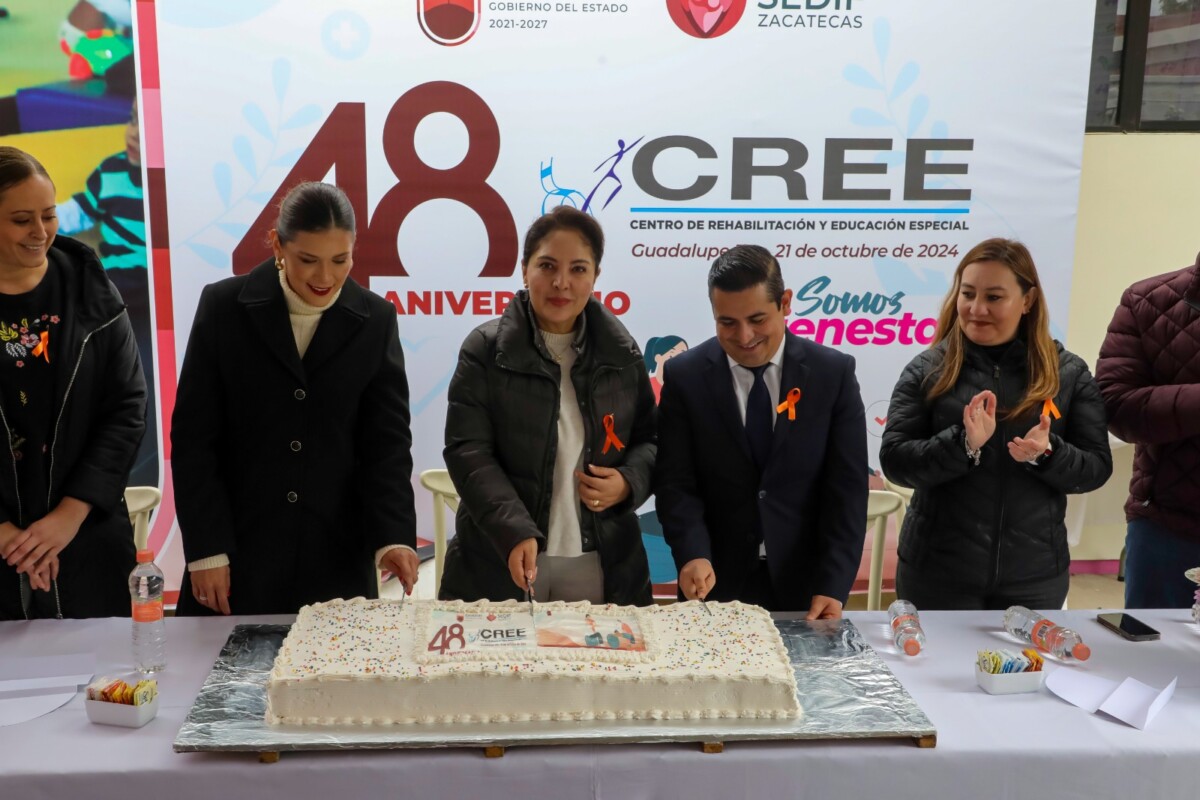 Guadalupe, Zac.- Con motivo de la celebración del 48 Aniversario del Centro de Rehabilitación y Educación Especial (CREE), el Gobierno de Zacatecas, que encabeza el mandatario estatal David Monreal Ávila, reconoció la labor diaria realizada por directivos y personal, en beneficio de las y los pacientes de este centro médico.