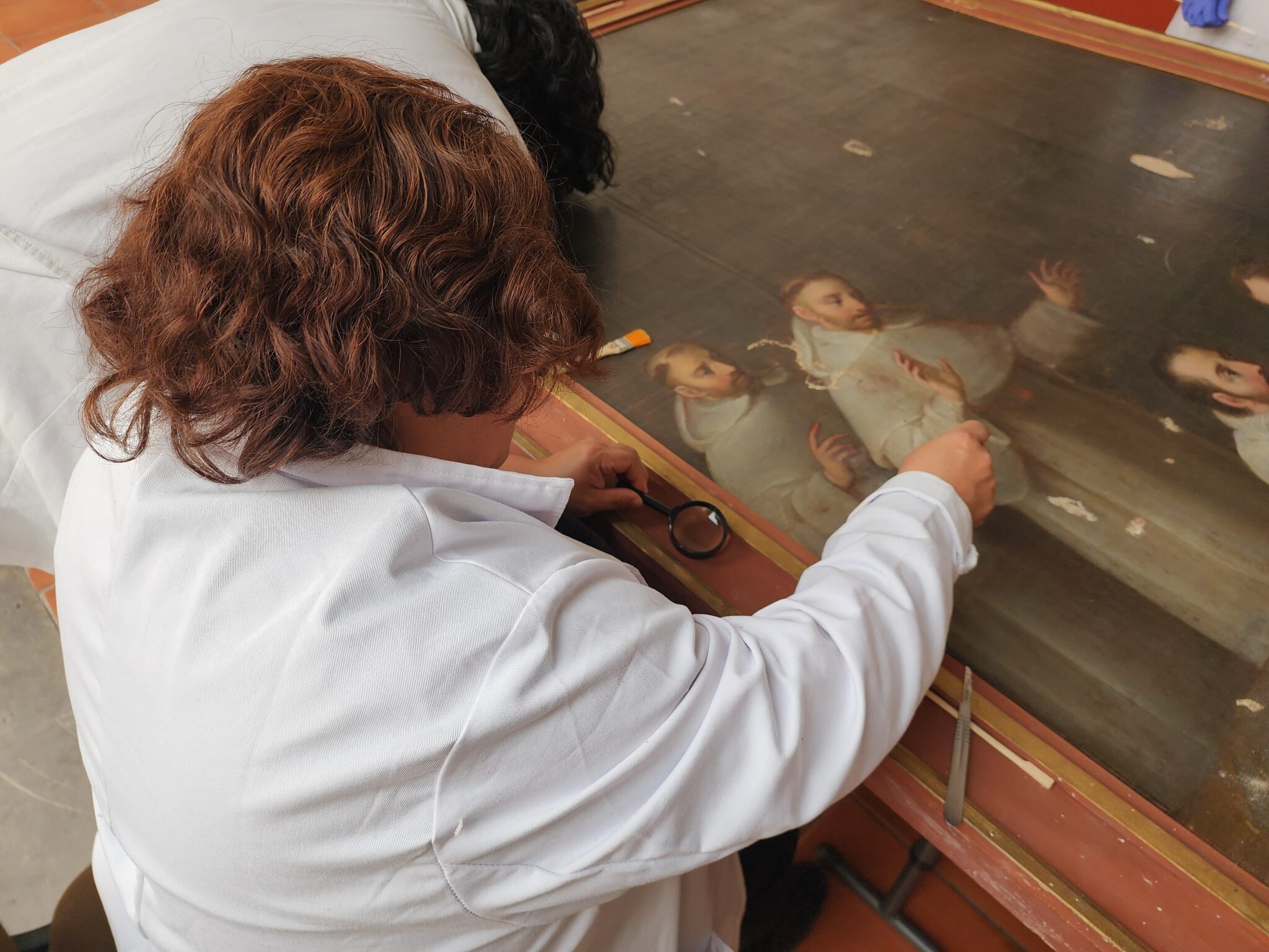 Zacatecas, Zac.- La Universidad Autónoma de Zacatecas (UAZ) sigue avanzando con el proyecto “Conservación, registro y diagnóstico de la pintura de caballete en la Rectoría”, que se realiza en colaboración con la Secretaría General de la universidad y la Escuela Estatal de Conservación y Restauración de Zacatecas “Refugio Reyes” (EECyRZ).
