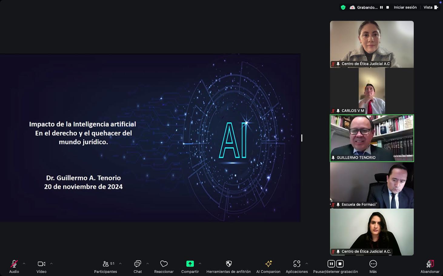 En esta conferencia que impartió el Doctor Guillermo A. Tenorio Cueto, Director de la Escuela de Gobierno y Economía de la Universidad Panamericana, el Magistrado Presidente agradeció los esfuerzos realizados para que este importante jurista ofreciera este puente hacia la reflexión en materia de Inteligencia Artificial; no sin antes destacar la siempre disponibilidad de la Licenciada Maley Infante Moreno, Directora del Centro de Ética Judicial.