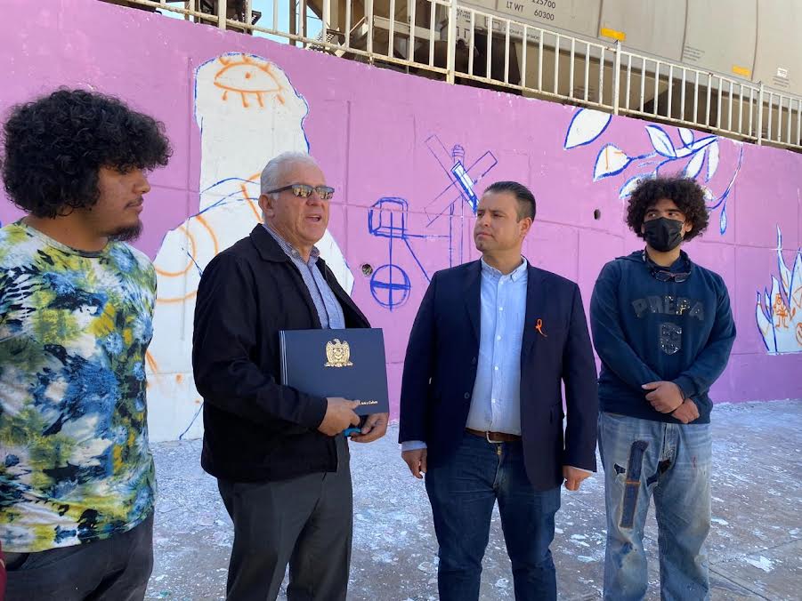 Varela Pinedo destacó que en la parte superior de la barda están las vías del tren, cuya locomotora viajan a los Estados Unidos, por lo que comentó que “lo que se trata es recuperar las calles, llenarlas de urbanismo, de arte”.