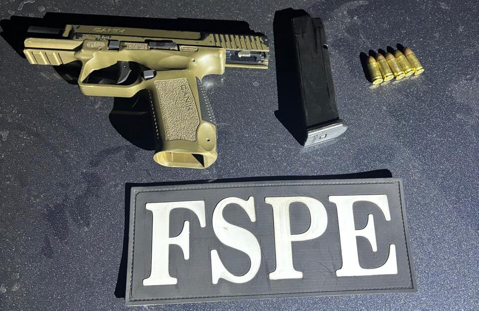 Julio N, de 28 años de edad, y Fernando N, de 24 años de edad, circulaban en un automóvil Kia, color gris Oxford, con reporte de robo; portaban un arma de fuego tipo escuadra, un cargador metálico y 5 cartuchos útiles calibre 9mm.