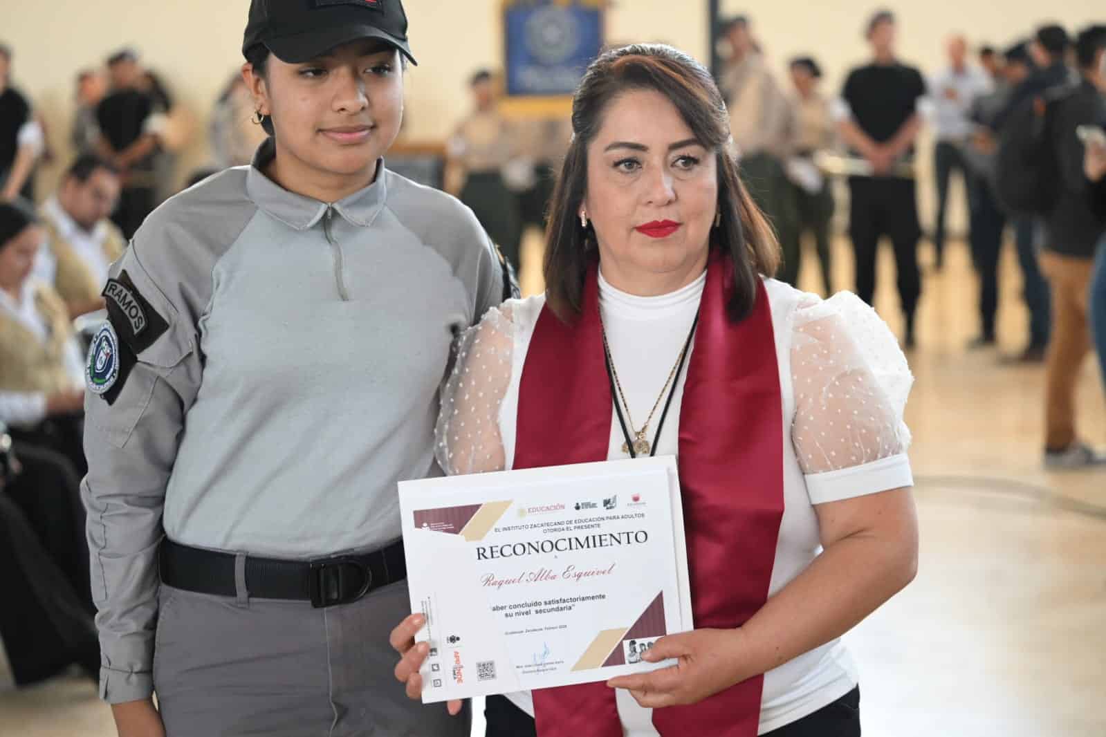 En presencia también de José Saldívar Alcalde, presidente municipal de Guadalupe, reconoció a estas personas por ser el vivo ejemplo de que nunca es tarde para aprender ni estudiar, y ahora son parte de las y los 8 mil 050 zacatecanos que terminaron su primaria en 2024 y de los 8 mil 756 su secundaria, gracias al trabajo que coordina Gizel Liliana Llamas Ibarra al frente del IZEA.