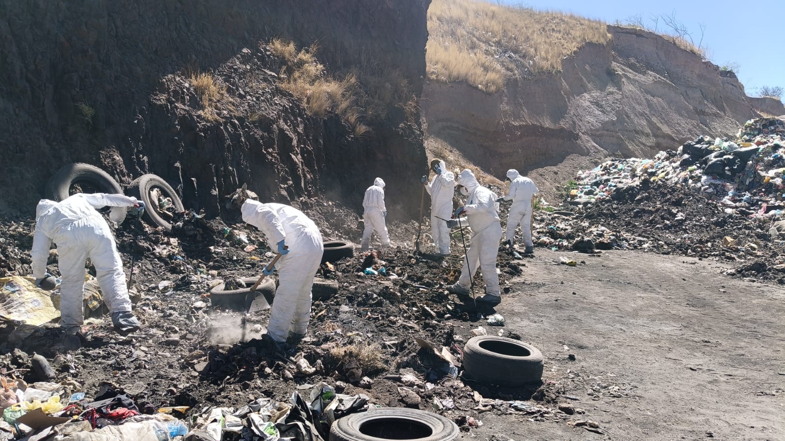 Desde temprana hora, el personal de las comisiones Local y Nacional de Búsqueda de Personas y de la Fiscalía Especializada para la Atención de Desaparición Forzada de Personas y Desaparición cometida por Particulares se reunieron en el basurero con la finalidad de continuar con las acciones de búsqueda.