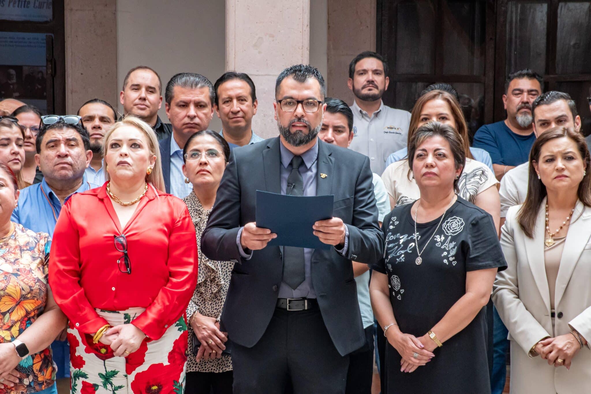 En el patio del edificio de la Rectoría y acompañado por miembro de la administración central, coordinadores de área, directores de diferentes unidades académicas y responsables de programa, señaló que, la institución no está acéfala y tiene rumbo, por lo que invitó a todos los universitarios a conducirse con la civilidad política que se amerita; a la vez exigió la no intervención externa.