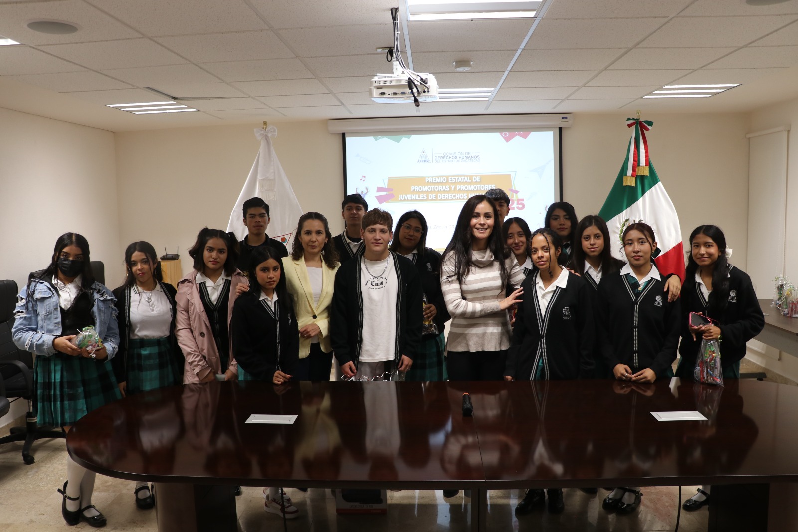 Zacatecas, Zac.- La Comisión de Derechos Humanos del Estado de Zacatecas (CDHEZ), entregó el Premio Estatal de Promotoras y Promotores Juveniles de Derechos Humanos 2025 a estudiantes del Colegio de Bachilleres del Estado de Zacatecas (COBAEZ) Plantel “Roberto Cabral del Hoyo”, reconociendo su compromiso en la promoción de los derechos humanos en sus entornos escolares.