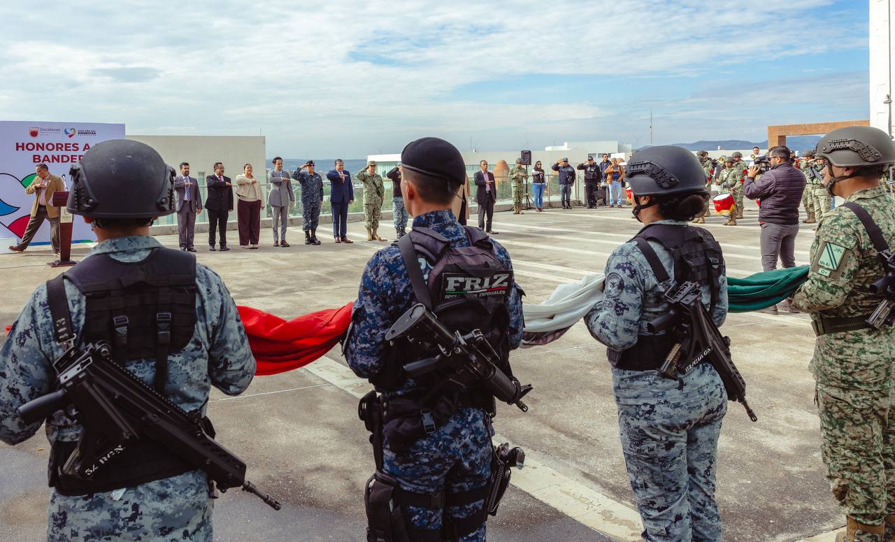 Zacatecas, Zac.- Al encabezar la ceremonia de Honores a la Bandera en las instalaciones de Ciudad Administrativa, el Gobernador David Monreal Ávila reconoció el compromiso y la entrega de la clase trabajadora adscrita al Poder Ejecutivo, y en un acto de justicia laboral, anunció una serie de medidas orientadas al fortalecimiento del servicio público.
