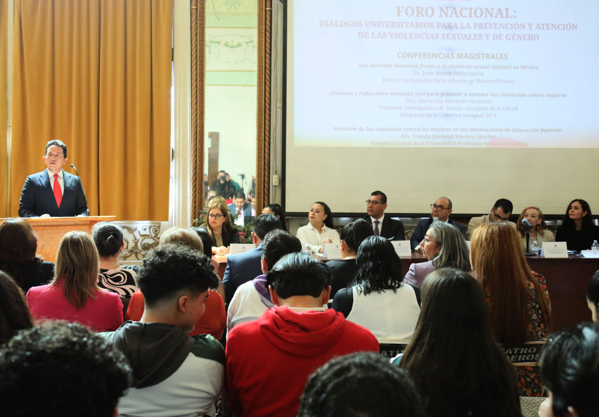 En este Foro, denominado “Diálogos Universitarios para la Prevención y Atención de las Violencias Sexuales y de Género”, el Magistrado Presidente reconoció que la justicia por sí sola no basta; dijo “no basta con castigar la violencia después de que ocurre, es urgente desmontar las estructuras culturales que la generan”, es por ello que celebró este esfuerzo colectivo que además de ser un punto de encuentro para la reflexión, será una ruta hacia un México en el que la igualdad no sea una aspiración, sino una realidad; un país donde la justicia, la dignidad y la paz sean un patrimonio de todas y todos.