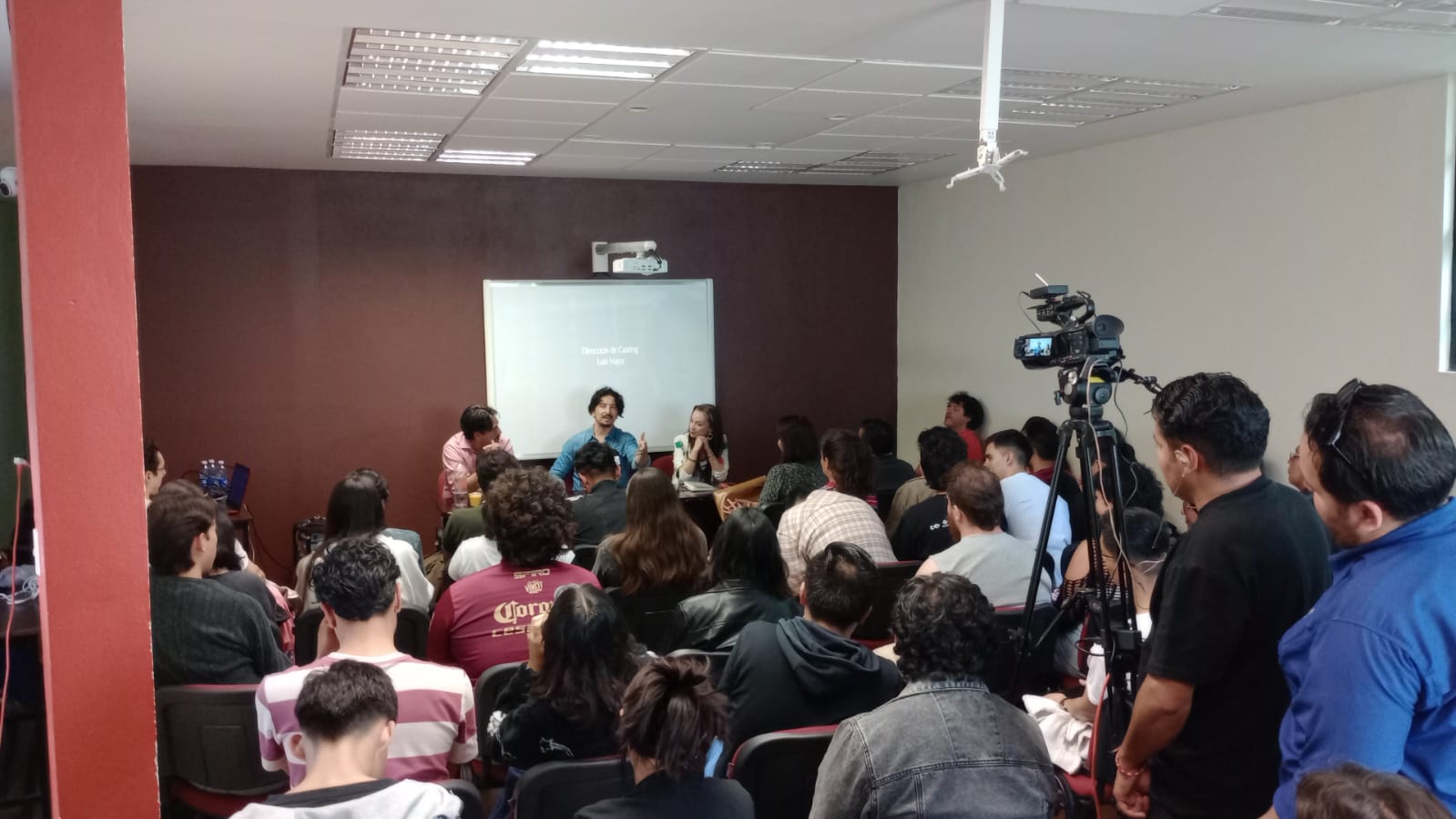 Tras la proyección, se realizó un conversatorio en el que participaron los docentes Eduardo Jacobo Bernal, Elizabeth Flores Olague y el director de la cinta.