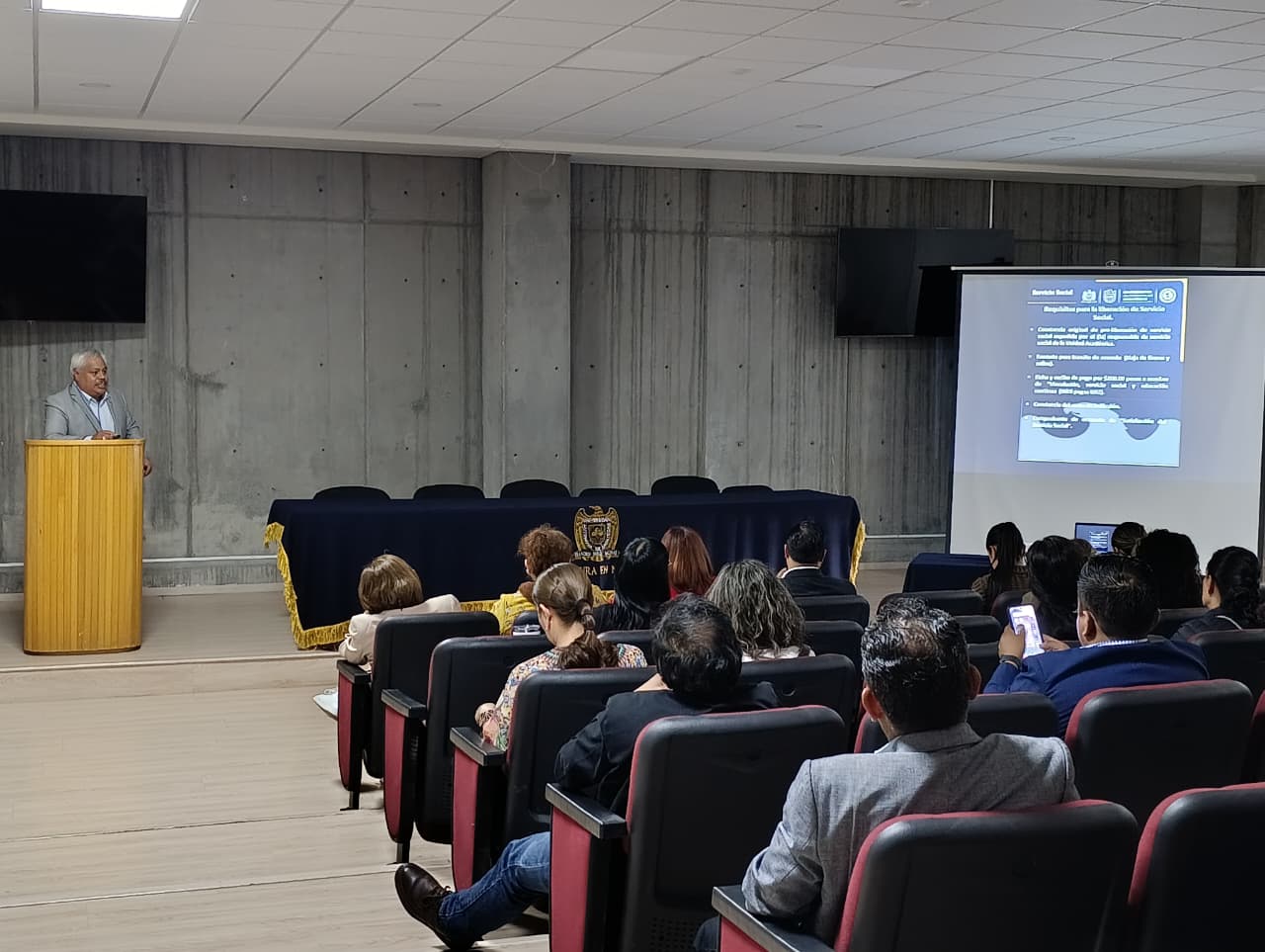 El encuentro reunió a responsables de Servicio Social de las distintas unidades académicas con el propósito de fortalecer institucionalmente los procesos de coordinación, definir estrategias conjuntas y establecer procedimientos claros para la asignación, seguimiento y evaluación del servicio social que deben realizar los estudiantes de nivel licenciatura, conforme a la reglamentación universitaria vigente.