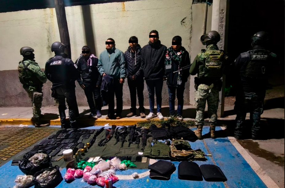 En una acción conjunta, personal del Ejército Mexicano, la Guardia Nacional, la Fuerza de Reacción Inmediata Zacatecas (FRIZ) y la Policía de Investigación de la Fiscalía General de Justicia del Estado (FGJEZ), realizaron un operativo que dejó como resultado la detención de cinco personas identificadas como Luis Alberto N., de 21 años de edad, proveniente de Jalisco; Antonio N., de 22 años, originario de Nayarit; Daniel N., de 22 años, de Chiapas; Jesús Enrique N., de 22 años, del Estado de México y José Ángel N., de 27 años, de Zacatecas.