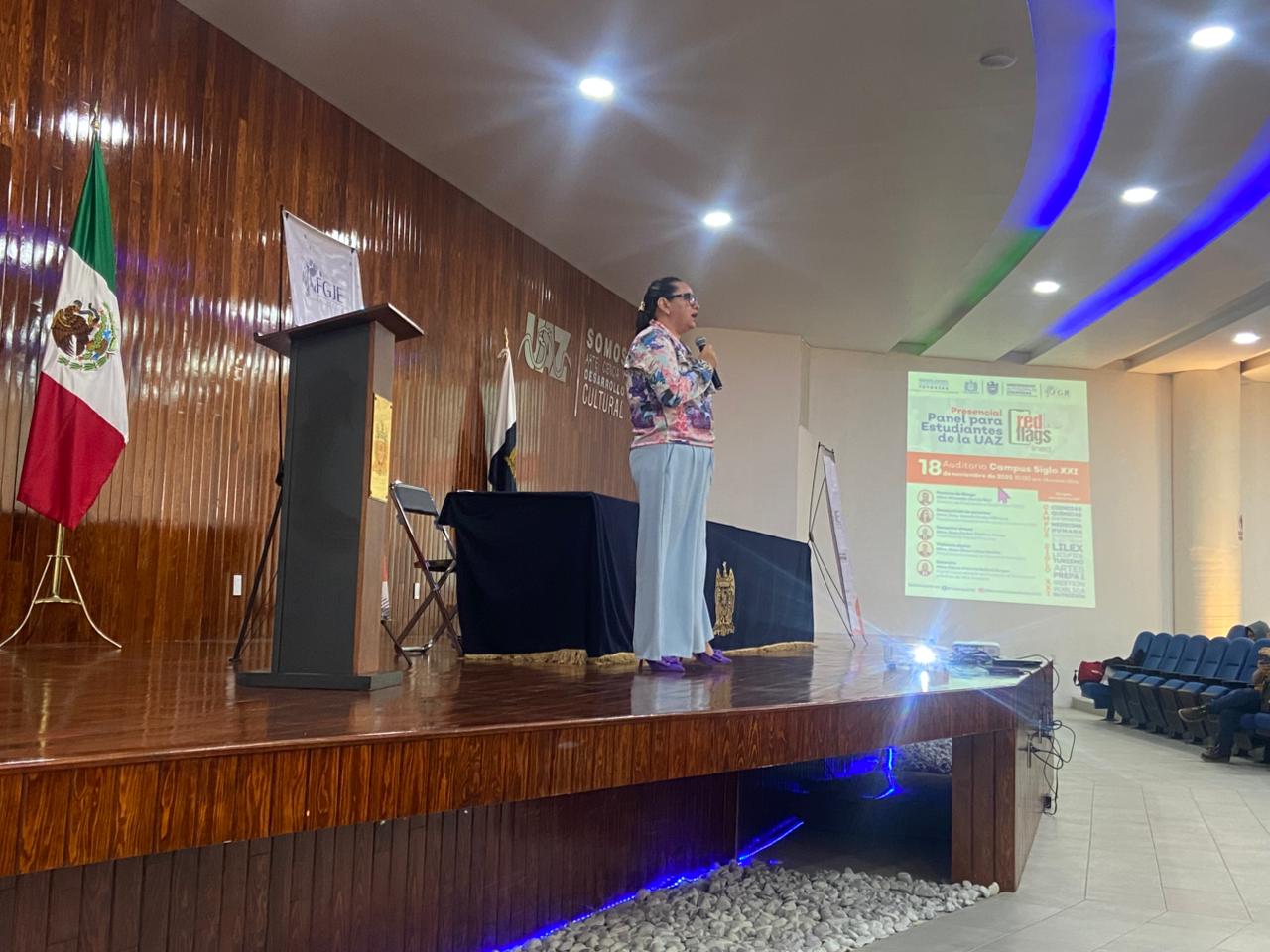 Zacatecas, Zac.-Con el propósito de que los jóvenes universitarios de las diferentes unidades académicas que se encuentran en el Campus UAZ Siglo XXI conozcan y prevengan tres de los delitos más recurrentes en el estado, como son la violencia digital, desaparición de personas y extorsión, se llevó a cabo el “Panel para estudiantes de la UAZ, red flags en línea”.