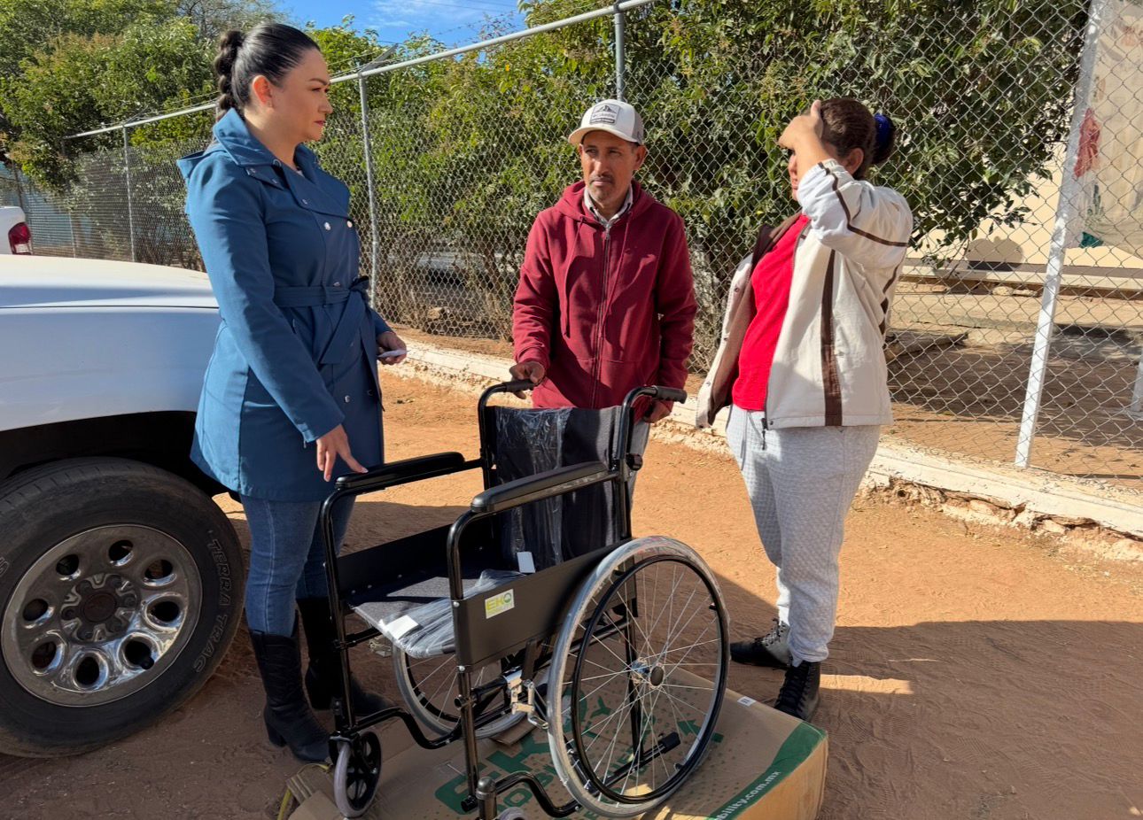 Durante los recorridos en territorio y en el marco de los eventos de entrega de calzado escolar, la secretaria Bennelly Hernández identificó necesidades específicas y realizó la entrega directa de sillas de ruedas en diversas comunidades, tales como Plenitud, Los Ángeles de los Medrano y La Manga en Fresnillo. Estas acciones fortalecen el bienestar y mejoran la calidad de vida de quienes, por una enfermedad o condición física, dependen de un apoyo funcional para desplazarse.
