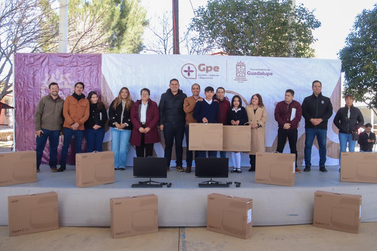 Zacatecas, Zac.- Con el objetivo de darle continuidad a las políticas públicas encaminadas al mejoramiento educativo, en las que intervienen el Gobierno Federal, Estatal, Municipal, la Secretaría del Zacatecano Migrante, los clubes migrantes y padres de familia, el Gobierno de Pepe Saldívar hizo entrega de 10 equipos de cómputo a la escuela telesecundaria “Nicolas Bravo” de la comunidad de San Ramón.