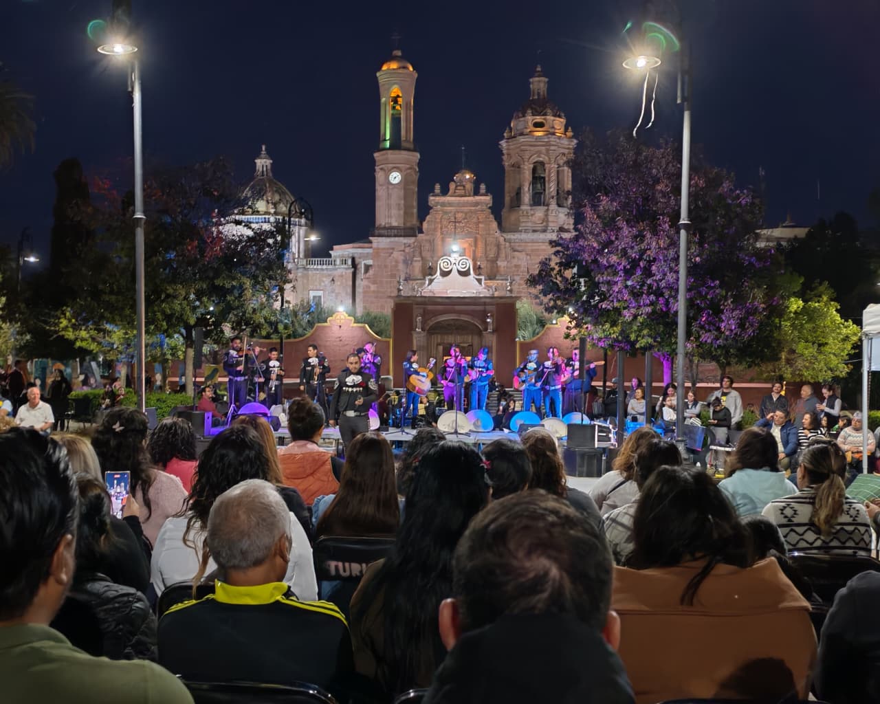 En «Al ritmo del corazón» una multitud de espectadores disfrutó de los conciertos del mariachi Los Reyes de Guadalupe y del espectacular repertorio de la Banda Sinfónica de Guadalupe, contando previamente con muestras de la Compañía Estatal de Danza Folclórica Zacatecas y de los talleres de la Casa de Cultura de Guadalupe.