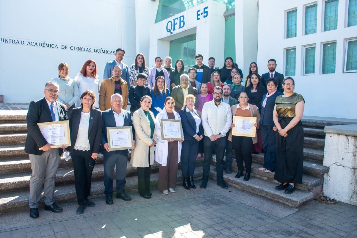 Zacatecas, Zac.- La Unidad Académica de Ciencias Químicas (UACQ) de la Universidad Autónoma de Zacatecas (UAZ), realizó la entrega de reconocimientos a las instituciones públicas y privadas que participaron como sedes receptoras del Servicio Social para estudiantes del programa de Químico Farmacéutico Biólogo (QFB), como muestra de gratitud por su respaldo a la formación profesional del estudiantado universitario.