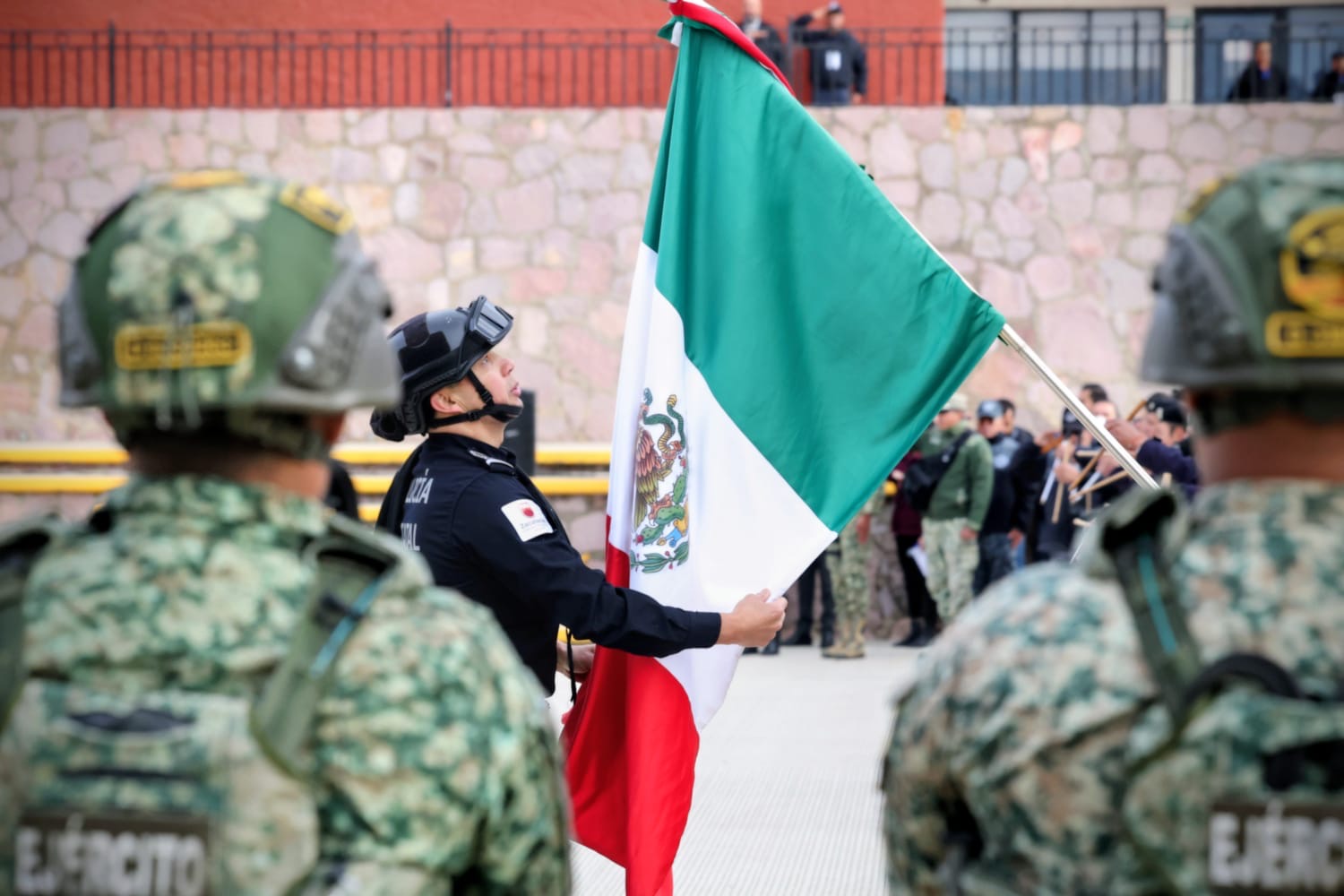 En este evento también estuvieron presentes la Delegada de Programas para el Desarrollo, Adilene Rosales Romero; el Jefe de Estación del Centro Nacional de Inteligencia, Juan Gabriel Sosa Pinto; el Secretario Técnico de la Mesa de Construcción de Paz y Seguridad, Osvaldo Cerrillo Garza; el Subsecretario de Operación Policial, Ginés Jaime Ruiz García; el Director de la Policía Estatal Preventiva, Rafael Fuerte Mendoza, así como tropas y agentes de la Guardia Nacional, Ejército Mexicano, Policía Estatal y de Seguridad Vial.