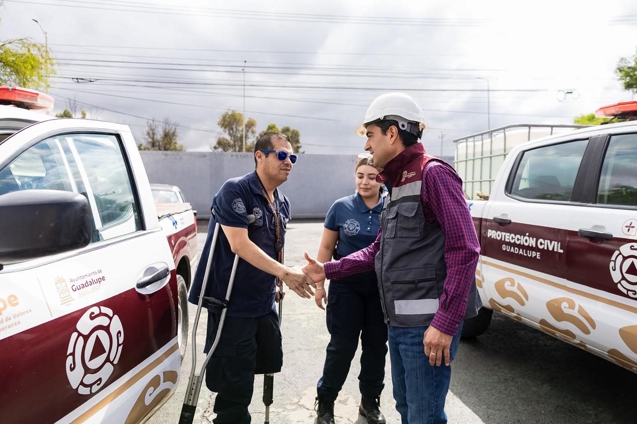 “Debemos cuidar a quienes nos cuidan”, indicó el alcalde guadalupense en la supervisión, comentando asimismo que el personal de trabajo de Protección Civil está a disposición para conocer y atender todos los reportes surgidos, y así minimizar los daños y asegurar una operación continua y segura.