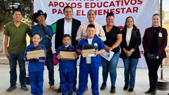 Guadalupe, Zac.- Con la finalidad de que las y los alumnos de las comunidades de Guadalupe cuenten con calzado digno para asistir a sus escuelas, continúa la entrega de Apoyos Educativos para el Bienestar, programa impulsado por el Gobernador David Monreal. El Presidente de Guadalupe, Pepe Saldívar acompañado del diputado local Saúl Cordero y la…