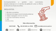 Zacatecas, Zac.- El Gobierno del Estado, a través de la Secretaría del Zacatecano Migrante (Sezami) y la Oficina de Beneficios Federales (FBU por sus siglas en inglés) del Consulado General de Estados Unidos en Guadalajara, convoca a las y los zacatecanos que laboraron en EE.UU. a la Cuarta Jornada de Entrevistas a una pensión del…