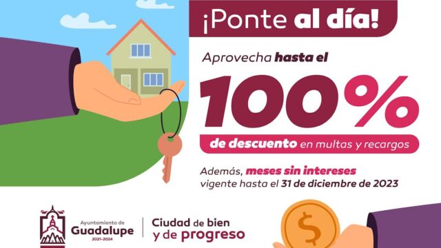 Zacatecas, Zac.- El Ayuntamiento de Guadalupe, a través de la Secretaría de Tesorería y Finanzas, invitan a los guadalupenses a beneficiarse con el programa denominado ‘Ponte al Día’, con el cual se apoya a los pobladores que cuentan con un adeudo en sus contribuciones, con la condonación de hasta el 100% por concepto de multas…