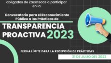 Zacatecas, Zac. – Con el fin de reconocer a las instituciones públicas del estado de Zacatecas que han puesto en marcha mejores prácticas de transparencia proactiva, el Instituto Zacatecano de Transparencia, Acceso a la Información y Protección de Datos Personales (IZAI) emitió la convocatoria para el registro de estos ejercicios, la cual permanecerá abierta hasta…