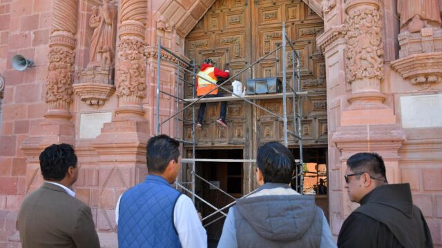 Zacatecas, Zac.- El Alcalde de Guadalupe, Julio César Chávez Padilla, realizó una supervisión de obra correspondiente a la rehabilitación de la puerta del Convento de Guadalupe ubicado en el Jardín Juárez. Se trata del mantenimiento de la puerta de sección de 3.80 x 5.80 metros, incluyendo tratamiento de metales, reposición de chapetones, hidratación de madera…