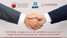Zacatecas, Zac..- Gracias al trabajo conjunto entre la Secretaría de Finanzas (SEFIN) y el Instituto de Seguridad y Servicios Sociales de los Trabajadores del Estado de Zacatecas (ISSSTEZAC), se logró realizar el pago al Servicio de Administración Tributaria (SAT) por 30.5 millones de pesos, por concepto de Impuesto Sobre la Renta (ISR), no enterados dentro…