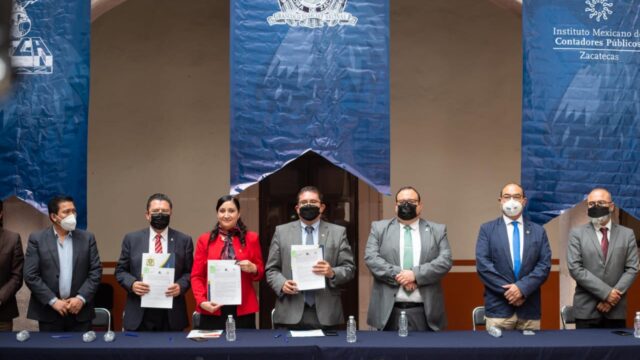 Zacatecas, Zac.-Reunidos en el Patio central de Rectoría, autoridades de la Universidad Autónoma de Zacatecas (UAZ) a través de la Unidad Académica de Contaduría y Administración (UACyA), signaron un convenio de colaboración con una de las instituciones de profesionistas más consolidada con las que cuenta el Estado, el Instituto Mexicano de Contadores Públicos de Zacatecas…