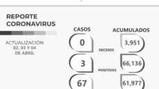 Zacatecas sumó cuatro días consecutivos sin decesos asociados al COVID-19, luego de que el sábado 2, domingo 3 y este lunes tampoco se registraron fallecimientos por la enfermedad asociada al virus. La Secretaría de Salud de Zacatecas (SSZ) informó que fueron 67 las personas recuperadas y tres nuevos contagios, durante los últimos tres días. Con…