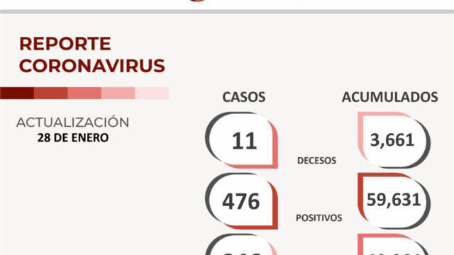 Zacatecas, Zac.- Por segunda ocasión en la semana, el contagio de COVID-19 reportó este viernes un ligero descenso, al registrar 476 nuevos casos. Además, se recuperaron 246 personas y fallecieron 11, de acuerdo a la Secretaría de Salud de Zacatecas (SSZ). En lo que respecta a los 246 recuperados, son 148 mujeres y 98 hombres,…